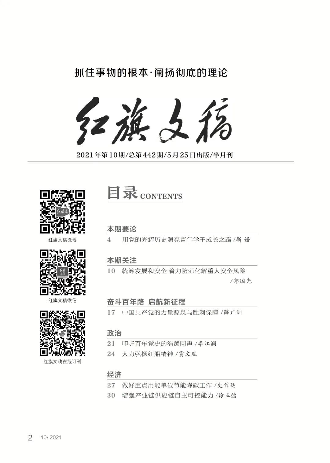 近日,求是杂志社主管主办的《红旗文稿》2021年第10期刊发了我校校长贾文胜署名文章《大力弘扬红船精神》。全文如下: