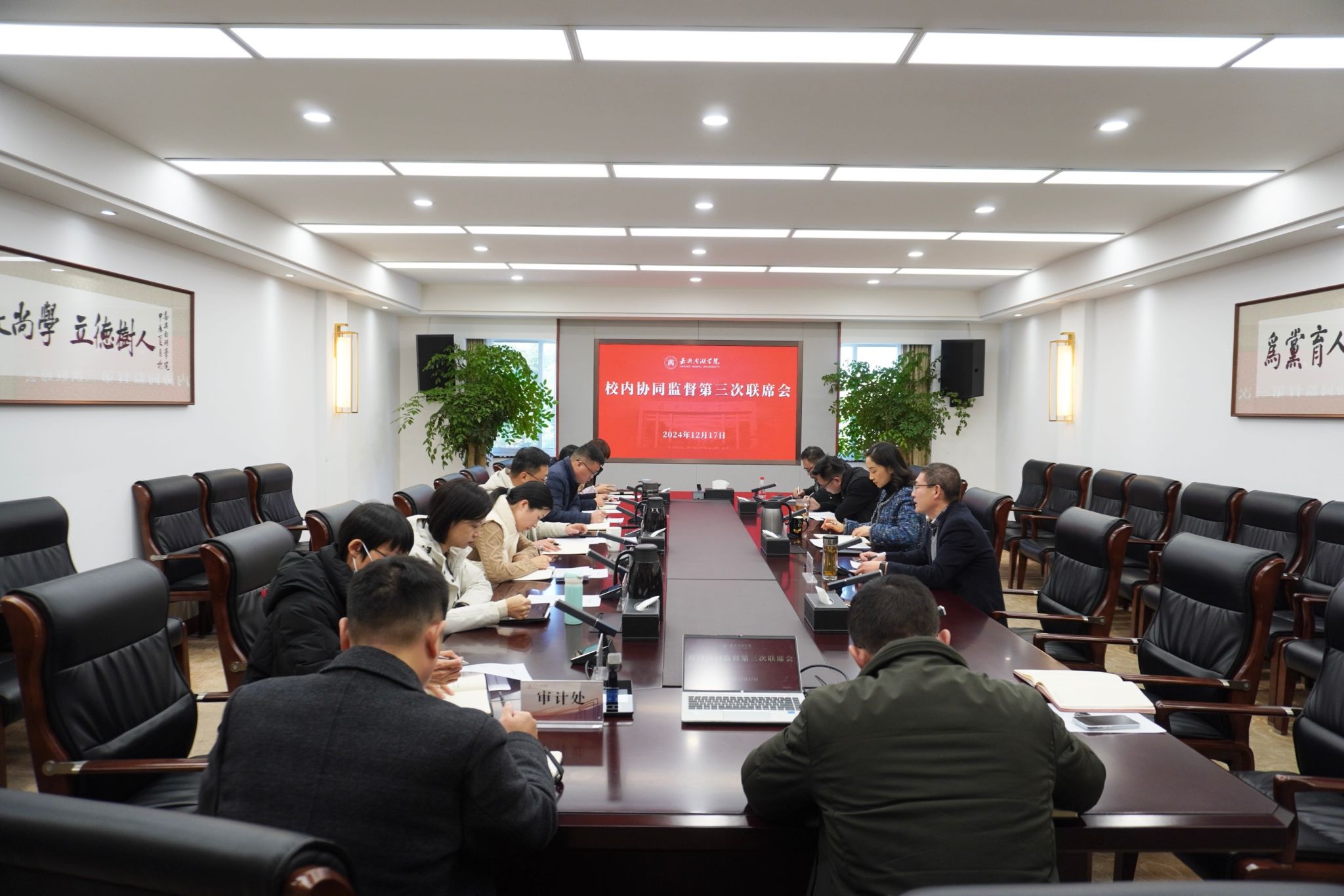 12月17日下午,学校召开校内协同监督第三次联席会。校党委委员、纪委书记、监察专员柯羽主持会议,党委(校长)办公室、组织部(统战部、人才办)、宣传部、纪检监察室、人事处(教师工作部、离退休工作处、教师发展中心)、学生工作处(部)、科研处、计划财务处、审计处、资产与实验室设备管理处等协同监督成员单位负责人参加会议。