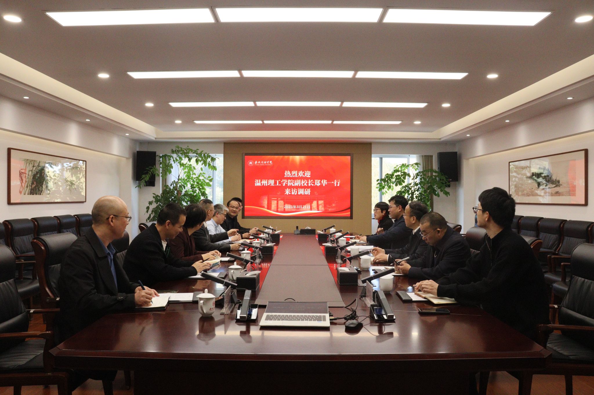 3月21日下午,温州理工学院副校长、党委委员郑华一行来我校调研。副校长、党委委员赵渊,教务处、计划财务处、社会合作与国际交流处、后勤服务中心相关负责人参加座谈交流。