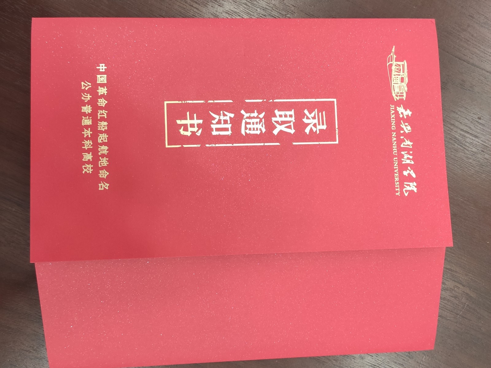 随着红色的三折页缓缓打开,党的百年征程跃然纸上。嘉兴红船的模型精致地印在录取通知书上,三塔、壕股塔、南湖革命纪念馆、江南水乡等元素也有所呈现。
